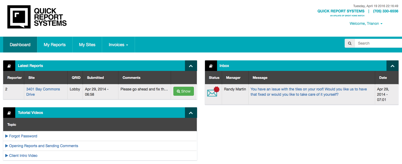 Simply scan the appropriate QRID card when you arrive, choose your checklist, fill out the report with comments and photos, and send it directly to your client's dashboard for them to review! An optional email will notify the client that they have a new report.