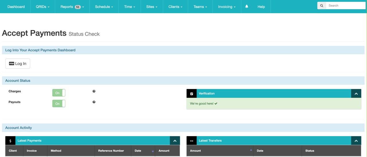 Accept credit card payments from clients directly into your bank account without ever leaving QRIDit®. Our payment portal uses payment processor Stripe Inc. as a secure gateway.
